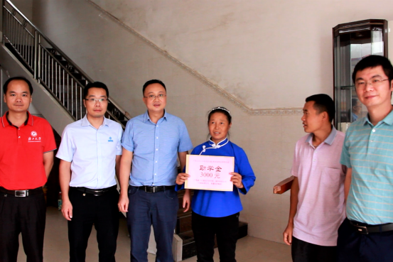 在结束对两所支教中学的慰问后,慰问团成员分四个小组,分别前往永靖村、口角村、百林村、者仲村等永利官网4个定点扶贫村,走访慰问了11名教育帮扶贫困学生。慰问团走村入户,与学生家长进行亲切交谈,深入了解学生的学习生活情况,并为每位贫困学生送去了3000元的慰问金。同时,鼓励学生们要发奋学习,自强不息,努力用知识改变命运,成为对家庭、社会和国家有用的人才。